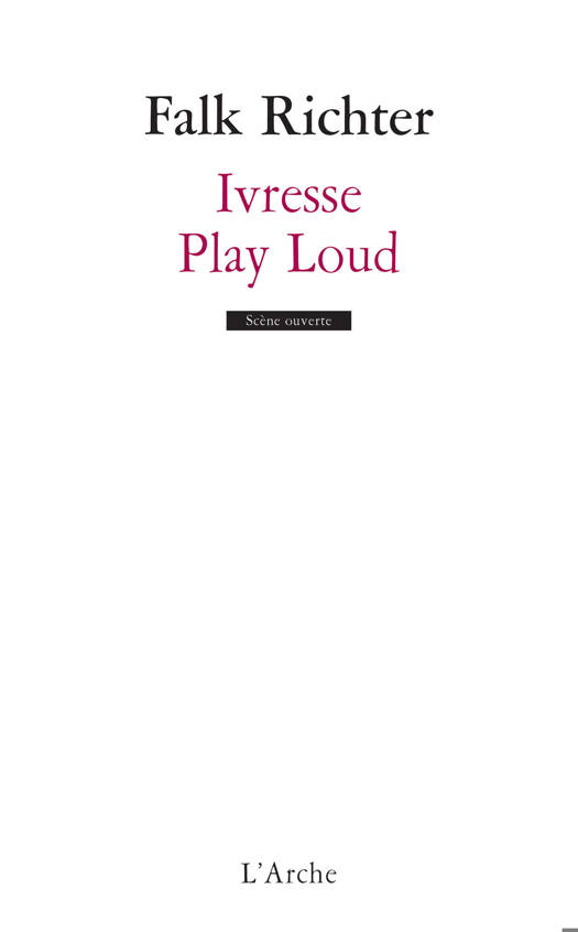 Falk Richter explore dans Ivresse, la psyché contemporaine. C'est comme si, arrivés à la fin d'un monde, nous ne pouvions que continuer d'avancer droit devant. Play Loud est un assemblage d'histoires fragmentées, comme autant de vies possibles.