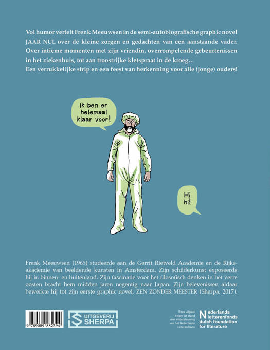 In elke relatie komt vroeg of laat de vraag: willen we een kind? Een vraag die bij de vrouw vaak eerder opkomt dan bij haar partner. Auteur Frenk Meeuwsen worstelde een tijdlang met tegenstrijdige gevoelens, maar wist zijn antwoord uiteindelijk ook: ja, ik wil! In deze semi-autobiografische striproman vertelt hij met veel humor over alles wat daarna gebeurde, van intieme momenten met zijn vriendin Zaza, tot aan troostrijke kletspraat in de kroeg, overrompelende gebeurtenissen in het ziekenhuis en nog veel meer… Zeg maar gerust: alle belevenissen van het jaar Nul! Een verrukkelijk (strip)leesboek over zwangerschap voor twee en alles erna… Fraai verbeeld en met veel humor verteld, een feest van herkenning voor alle (jonge) ouders. Frenk Meeuwsen publiceerde eerder de striproman Zen zonder meester (Sherpa, 2017)