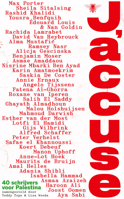 Met bijdragen van Fatena Al-Ghorra, Haroon Ali, Ghayath Almadhoun, Asmae Amaddaou, Karin Amatmoekrim, Asmaa Azaizeh, Yousra Benfquih, Maurits de Bruijn, Saskia de Coster, Koert Debeuf, Mahmoud Darwish, Annie Ernaux, Alicja Gescinska, Nan Goldin, Isabella Hammad, Lotfi El Hamidi, Amal Helles, Anne-Lot Hoek, Malou Holshuijsen, Roxane van Iperen, Rashid Khalidi, Safae el Khannoussi, Rachida Lamrabet, Édouard Louis, Nisrine Mbarki, Benjamin Moser, Esther van der Most, Alma Mustafić, Ramsey Nasr, Joost Oomen, Max Porter, David Van Reybrouck, Aya Sabi, Salih El Saddy, Alfred Schaffer, Adania Shibli, Sheila Sitalsing, Angelo Tijssens, Teddy Tops, Manon Uphoff, Peter Verhelst, Lisa Weeda en Gijs Wilbrink.