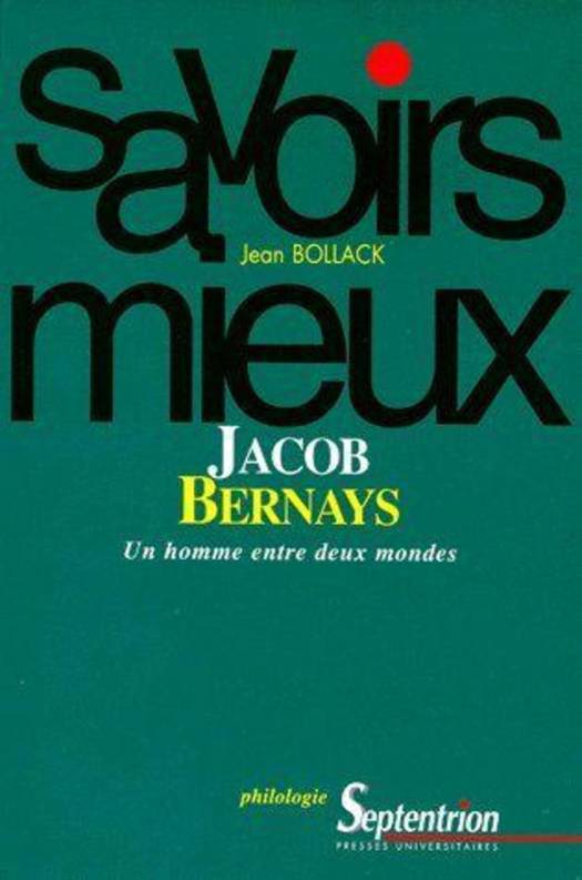 Jacob bernays (1824-1881), lettré autant que philologue, fut un grand découvreur. A bonn où il enseigna, il eut, entre autres élèves, nietzsche et wilamowitz. c'est une des figures les plus fascinantes de l'histoire des lettres. exclu par ses origines juives et par son ascétisme de l'institution, et, du même coup, de la folie d'une productivité scientiste effrénée, qui emportait le siècle, il est resté fidèle aux idées qui avaient justifié les lumières. il fit fructifier cette extériorité dans une recherche fondatrice, à la fois savante et ouverte.