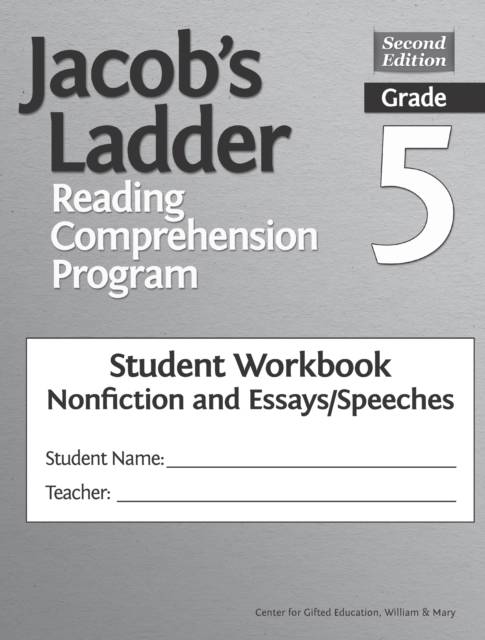 The Jacob's Ladder Reading Comprehension Program targets reading comprehension skills in high-ability learners by moving students through an inquiry process from basic understanding to critical analyses of texts, using a field-tested method developed by the Center for Gifted Education at William & Mary. Students in grade 5 will learn to comprehend and analyze any reading passage after completing the activities in Jacob's Ladder, Grade 5 (2nd ed.).