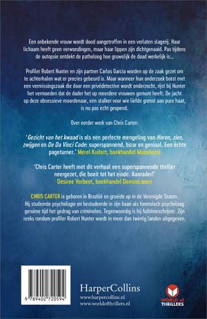 ‘Je hebt van die boeken waar je vanaf de eerste bladzijden in gezogen wordt en die je vervolgens niet meer weg wil leggen. Chris Carter schrijft met dit verhaal een superspannende thriller, die boeit tot het einde. Aanrader!’ Desiree Verbeet, boekhandel Dominicanen