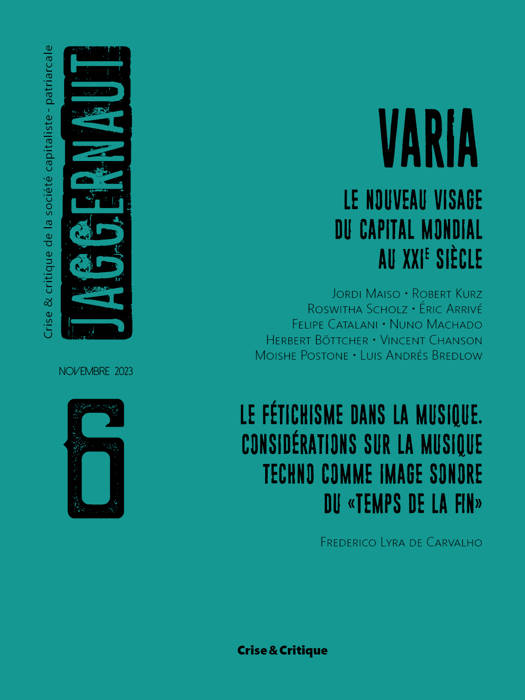Walter Benjamin affirmait de façon prémonitoire : « Que les choses continuent à aller ainsi, voilà la catastrophe ». Cent ans après, Robert Kurz remarquait qu'« un universalisme capitaliste accompli signifie désormais l'universalisation parfaite de la catastrophe, qui se manifeste aujourd'hui dans tous les domaines de la vie. » Il n'est plus possible d'ignorer la crise multidimensionnelle de la société capitaliste mondiale et son potentiel explosif, affectant la totalité de la vie sur Terre. Ce sixième numéro de la revue Jaggernaut nous convie à aborder les manifestations convergentes de ce temps de la fin, en parcourant les formes qu'il prend dans les domaines économique, esthétique, numérique, idéologique, patriarcal et musical.