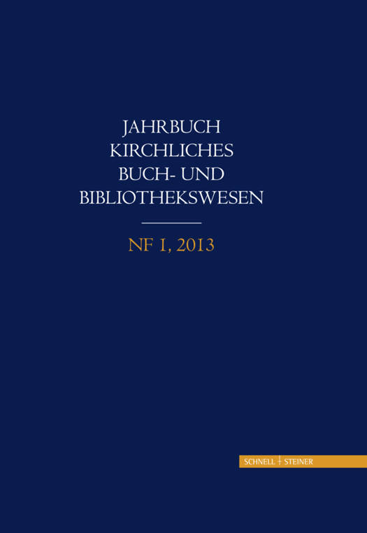 Das Jahrbuch zum kirchlichen Buch- und Bibliothekswesen blickt auf eine mehr als 60 Jahre wahrende Tradition zuruck. Seit dem Jahr 2000 wird es gemeinsam von den beiden kirchlichen Bibliotheksverbanden, der Arbeitsgemeinschaft Katholisch-Theologischer Bibliotheken (AKThB) und dem Verband kirchlich-wissenschaftlicher Bibliotheken (VkwB) in der Arbeitsgemeinschaft der Archive und Bibliotheken der evangelischen Kirche (AABevK) getragen. Mit dem Jahr 2013 erscheint es als Neue Folge nunmehr im Verlag Schnell & Steiner in neuer Gestaltung und Verbreitung.
