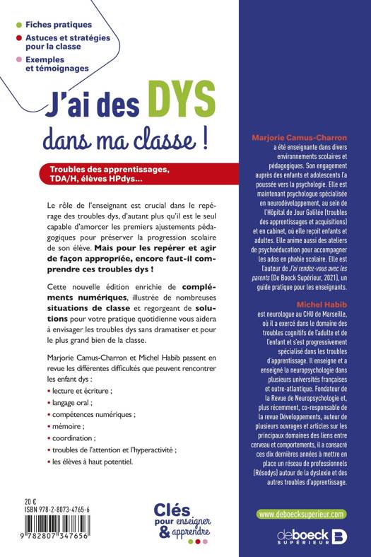 Cette nouvelle édition enrichie de compléments numériques, illustrée de nombreuses situations de classe et regorgeant de solutions pour votre pratique quotidienne vous aidera à envisager les troubles dys sans dramatiser et pour le plus grand bien de la classe.