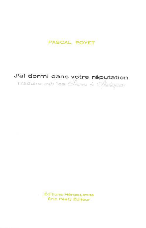 J’ai dormi dans votre réputation, sous-titré « Traduire mais les Sonnetsde Shakespeare », réunit douze textes dont dix ont été originellement adressés au public des Laboratoires d’Aubervilliers, en 2019, alors que Pascal Poyet entreprenait la traduction des Sonnets (traduction en cours).