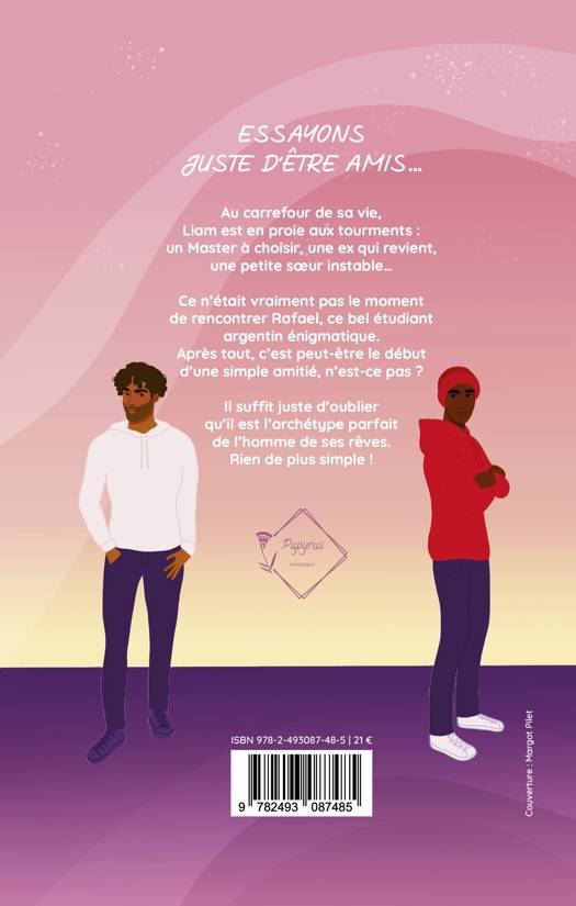 Au carrefour de sa vie, Liam est en proie aux tourments : un Master à choisir, une ex qui revient, une petite sœur instable... Ce n’était vraiment pas le moment de rencontrer Rafael, ce bel étudiant argentin énigmatique. Après tout, c’est peut-être le début d’une simple amitié, n’est-ce pas ? Il suffit juste d’oublier qu’il est l’archétype parfait de l’homme de ses rêves. Rien de plus simple !