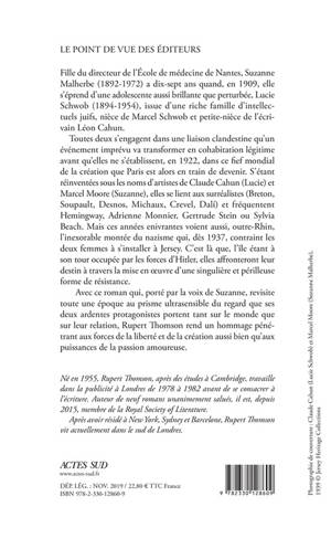 Avec ce roman qui, porté par la voix de Suzanne, revisite toute une époque au prisme ultrasensible du regard que ses deux ardentes p rotagonistes portent tant sur le monde que sur leur relation, Rupert Thomson rend un hommage pénétrant aux forces de la liberté et de la création aussi bien qu'aux puissances de la passion amoureuse.