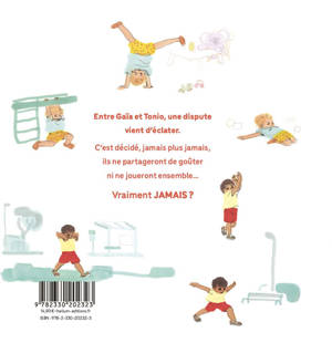 Entre Gaïa et Tonio, une dispute vient d'éclater. C'est décidé, jamais, non plus jamais, ils ne partageront de goûter, ni ne joueront ensemble... Vraiment JAMAIS ?