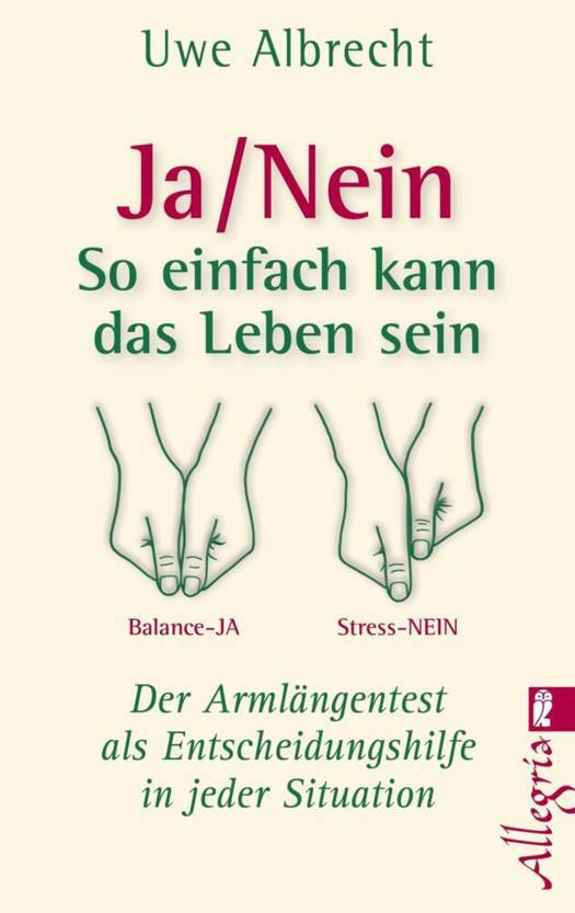 Mit Hilfe des Armlängentestes können wir lernen, der eigenen Intuition wieder zu vertrauen und verfügen somit im Alltag über eine zuverlässige Entscheidungshilfe. Nur unsere eigene innere Weisheit kann uns in solchen Situationen richtig führen. Die Methode ist innerhalb weniger Minuten erlernbar und wird anhand vieler Beispiele und Fotos anschaulich erklärt.