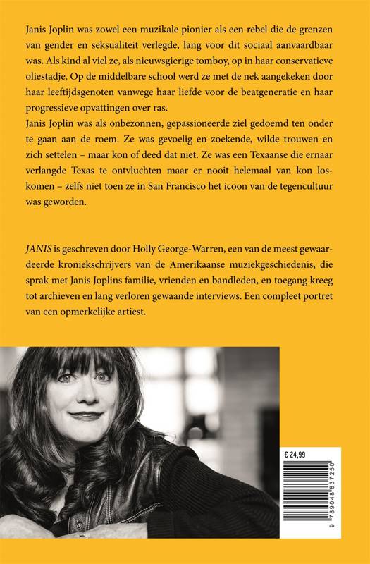 JANIS is geschreven door Holly George-Warren, een van de meest gewaardeerde kroniekschrijvers van de Amerikaanse muziekgeschiedenis, die sprak met Janis Joplins familie, vrienden en bandleden, en toegang kreeg tot archieven en lang verloren gewaande interviews. Een compleet portret van een opmerkelijke artiest.