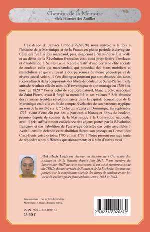 Étrangement absent des manuels d’histoire et autres ouvrages généraux sur les Antilles Janvier Littée (1752-1820) fut le premier député de couleur des colonies françaises à siéger dans une assemblée métropolitaine. Son existence nous renvoie à la fois à l’histoire de la Martinique et de la France en pleine période esclavagiste. Cet ouvrage tente de mettre à jour les zones d’ombre de la vie de cet homme et son rôle joué en Martinique et en France.