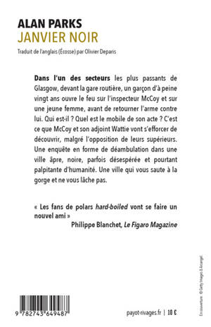 Dans l'un des secteurs les plus passants de Glasgow, devant la gare routière, un garçon d'à peine vingt ans ouvre le feu sur l'inspecteur McCoy et sur une jeune femme, avant de retourner l'arme contre lui. La scène se déroule sous les yeux de Wattie, l'adjoint de McCoy. Qui est ce mystérieux garçon ? Quel est le mobile de son acte ? C'est ce que les deux policiers vont s'efforcer de découvrir, malgré l'opposition de leurs supérieurs. Une enquête en forme de déambulation dans une ville âpre, noire, parfois désespérée et pourtant palpitante d'humanité. Une ville qui vous saute à la gorge et ne vous lâche pas.