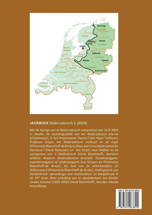Jaorboek Nedersaksisch 1 (2020) Mit de lezings van et Nedersaksisch symposium van 13-9-2019 in Zwolle: De sociolinguïstiek van het Nedersaksisch (Harrie Scholtmeijer), Is het Vriezenveens Twents? (Jan Nijen Twilhaar), Professor Entjes, het Nedersaksisch Instituut en de regio (Philomène Bloemhoff-de Bruijn), Maor wat is nou Nedersaksische literatuur? (Henk Nijkeuter) en Van Entjes naor Dalfsen en de westgreens van ’t Ooldsaksisch (Henk Bloemhoff). Aandere artikels: Amparte Nedersaksische woorden. Eenderweggens, meerderweggens of völderweggens (Lex Schaars en Philomène Bloemhoff-de Bruijn), De taal van de kelonietoeften uit Willemsoord (Philomène Bloemhoff-de Bruijn), Stellingwarfs van Donkerbroek: opmarkings over taelstruktuur en taelgebruuk in de 19de ieuw. Naor anleiding van et egodokement van Zander Jacobs Klooster (1820-1906) (Henk Bloemhoff). Veerder Inkelde besprekings.