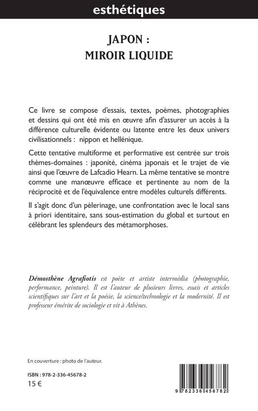 Ce livre se compose d'essais, textes, poèmes, photographies et dessins qui ont été mis en oeuvre afin d'assurer un accès à la différence culturelle évidente ou latente entre les deux univers civilisationnels: nippon et hellénique. Cette tentative multiforme et performative est centrée sur trois thèmes-domaines: japonité, cinéma japonais et le trajet de vie ainsi que l'oeuvre de Lafcadio Hearn. La même tentative se montre comme une manoeuvre efficace et pertinente au nom de la réciprocité et de l'équivalence entre modèles culturels différents. Il s'agit donc d'un pèlerinage, une confrontation avec le local sans à priori identitaire, sans sous-estimation du global et surtout en célébrant les splendeurs des métamorphoses.