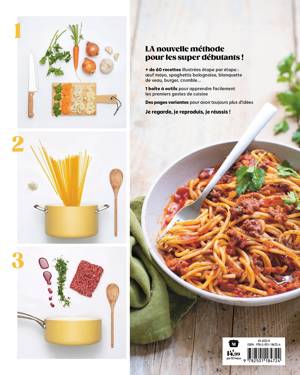 • + de 60 recettes illustrées étape par étape : œuf mayo, spaghettis bolognaise, blanquette de veau, burger, crumble…