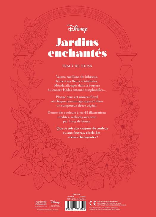 Vaiana cueillant des hibiscus, Kida et ses fleurs cristallisées, Mérida allongée dans la bruyère ou encore Hadès entouré d’asphodèles… Plonge dans cet univers floral où chaque personnage apparaît dans un somptueux décor végétal. Donne des couleurs à ces 45 illustrations inédites, réalisées avec soin par Tracy de Sousa.