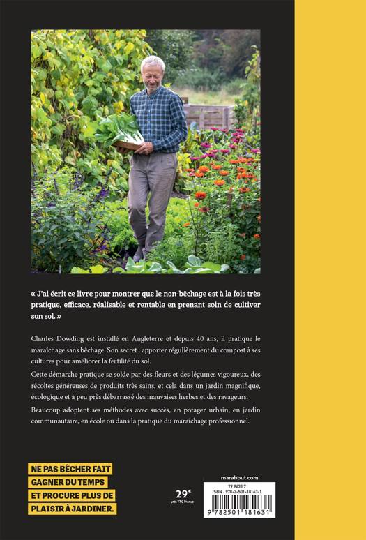 Charles Dowding est installé en Angleterre et depuis 40 ans, il pratique le maraîchage sans bêchage. Son secret : apporter régulièrement du compost à ses cultures pour améliorer la fertilité du sol. Cette démarche pratique se solde par des fleurs et des légumes vigoureux, des récoltes généreuses de produits très sains, et cela dans un jardin magnifique, écologique et à peu près débarrassé des mauvaises herbes et des ravageurs. Beaucoup adoptent ses méthodes avec succès, en potager urbain, en jardin communautaire, en école ou dans la pratique du maraîchage professionnel.
