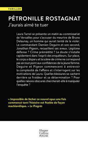 Laura Turrel se présente un matin au commissariat de Versailles pour s’accuser du meurtre de Bruno Delaunay, un homme qui aurait tenté de la violer. Le commandant Damien Deguire et son second, Jonathan Pigeon, recueillent ses aveux. Légitime défense ? Crime prémédité ? Le doute s’installe rapidement dans l’esprit des enquêteurs. Sur place, le corps a disparu et la scène de crime ne correspond pas en tout point aux confidences de la jeune femme. Deguire et Pigeon commencent à entrevoir la complexité de l’affaire et s’interrogent sur les motivations de Laura. Quelles blessures se cachent derrière sa froideur et sa détermination ? Pour quelles raisons obscures chercherait-elle à manipuler l’enquête ?