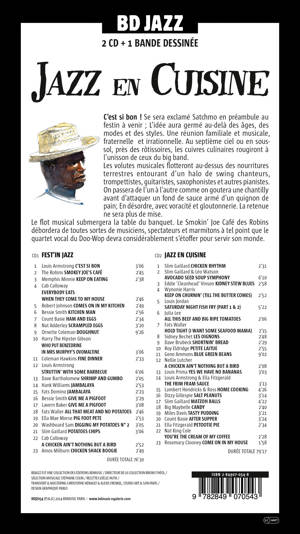 Un livre de recettes de cuisine de la Nouvelle Orléans, concocté par Joëlle Huth, illustré par José Correa, en 2 heures de jazz sur 2 compact discs. Un parfum de la Louisiane entre crevettes créoles à la galatoire, Po-Boys, Gumbo aux fruits de mer, et Jambalaya.<br /><br /> C’est si bon ! Se sera exclamé Satchmo en préambule au festin à venir ; L’idée aura germé au-delà des âges, des modes et des styles. Une réunion familiale et musicale, fraternelle et irrationnelle. Au septième ciel ou en sous-sol, près des rôtissoires, les cuivres culinaires rougiront à l’unisson de ceux du big band. Les volutes musicales flotteront au-dessus des nourritures terrestres entourant d’un halo de swing chanteurs, trompettistes, guitaristes, saxophonistes et autres pianistes. On passera de l’un à l’autre comme on goutera une chantilly avant d’attaquer un fond de sauce armé d’un quignon de pain; En désordre, avec voracité et gloutonnerie. La retenue ne sera plus de mise. Le flot musical submergera la table du banquet. Le Smokin’ Joe Café des Robins débordera de toutes sortes de musiciens, spectateurs et marmitons à tel point que le quartet vocal du doo wap devra considérablement s’étoffer pour servir son monde. <br /> La Blueswoman Memphis Minnie, déclenchera les hostilités par un tonitruant « Keep on eatin’ » tout en raucité. .Robert Johnson essaiera d’entrainer dans la cuisine quelqu’ accorte personne pendant que l’impératrice du blues, Bessie Smith, louera les Jelly Roll de son Kitchen Man. Nat Adderley et Count Basie compareront brouillade et oeufs au jambon. Les Doghnuts d’Ornette Coleman auront des formes étranges, spiralées et hétérogènes. Il conviendra d’éviter de les tremper dans l’ovaltine chocolaté de Mrs Murphy. Cacao et amphétamine ne font jamais bon ménage et le pianiste chanteur, Harry The Hipster Gibson, cher à Jack Kerouac, a toujours été un tantinet facétieux...<br /> Le son chaleureux et véhément du saxophone de Coleman Hawkins annoncera le début du Fine Dinner. Dans le « Backyard », Louis Armstrong aura installé l’antique barbecue datant du Hot five des années 20 régulièrement revisité par la suite. Le trompettiste et arrangeur, Dave Bartolomew, préparera crevettes et gumbo sur ce fond de mambo qui fait toujours penser que la Nouvelle-Orléans est un rocher caraïbe échoué sur les côtes américaines. Le chanteur country Hank Williams et le toujours vert Fats Domino échangeront leurs recettes de Jambalaya. Le contraste sera dans le plat et dans le son, tout comme le comparatif des pieds de porcs cuisinés par l’impératrice Bessie et Lavern Baker, chanteuse dont le tempérament siéra tout autant à cette cuisine roborative. La Solid Potatoe Salad d’Helen Mae Morse calera une partie de l’assemblée avec des produits de la ferme de Washboard Sam. Fats Waller déclarera sa flamme carnée exclusive (All meat, no potatoes), avant de passer aux poulardes. De Cab Calloway à l’endiablé Boogie Chicken Shake d’Amos Milburn en passant par Nellie Lutcher, le gallinacé semblera d’autant plus taillé pour le rythme qu’il sera servi par le fantasque Slim Gaillard. Les noyaux d’avocats scattés jusqu’à plus soif en compagnie de Leo Watson paraitront sortis d’Hellzapoppin. Les cuisiniers de ce film pourront danser le Lindy Hop tout leur saoul (soul ?), il sera alors bien temps de se concentrer sur le ragout d’Eddie Vinson. Et si les réflexions beurrées/salées du Blues shouter Wynonnie Harris n’auront rien à voir avec Guérande, elles rappelleront que le poisson n’a que trop attendu. Pas de friture sur la ligne quand le groove du saxophone alto de Louis Jordan s’allie à la gouaille du récidiviste Fats Waller ou à la patine du big band de Gene Krupa. Les oignons,poivrons, aubergines et sauce tomate de Sidney Bechet seront tout autant en « français dans le texte » que la Petite Laitue de Roy Eldridge alias « Little Jazz ». De leur coté, les Blue green beans du saxophoniste Gene Ammons accompagneront la Frim Fram Sauce d’Ella et Louis dans un soul food magnifiée par le trio vocal Hendricks Ross Lambert. <br /> On évacuera les quelques cacahuètes salées de Dizzy Gillespsie qui traînent encore sur le bar ou les délirantes boulettes de pain azymes (Matzo Balls) dont Slim Gaillard raffole avant d’attaquer les sucreries par la face Hard bop ou Rythm and Blues. Les Candy de Big Maybelle ou de Lee Morgan ne se départiront pas de ce soupçon d’amertume apte à faire passer l’excédent glucidique et les roulements du chariot à dessert seront suffisamment huilés pour faire glisser le Sugar Pie d’Ella Fitzgerald.<br /> La douceur de la crème du café concocté par Nat King Cole s’évaluera dans un après souper mené par le Count en personne. Sweet mais pas trop. Le crooner gardera le swing comme un trésor tout aussi précieux que ce festin rêvé.<br /><br /><br /> Stéphane Colin<br /><br /> JAZZ EN CUISINE <br /><br /><br /> CD 1 fest’in Jazz<br /><br /> 1 Louis Armstrong, C’est Si Bon 3’06<br /> 2 The Robins Smokey Joe’s Café 2’45<br /> 3 Memphis Minnie Keep On Eating 2’38<br /> 4 Cab Calloway Everybody Eats When They Come To My House 2’46<br /> 5 Robert Johnson Come On In My Kitchen 2’49<br /> 6 Bessie Smith Kitchen Man 2’56<br /> 7 Count Basie Ham And Eggs 2’34<br /> 8 Nat Adderley Scrambled Eggs 3’20<br /> 9 Ornette Coleman Doughnut 9’26<br /> 10 Harry the Hipster Gibson Who Put Benzedrine in Mrs Murphy’s Ovomaltine 3’06<br /> 11 Coleman Hawkins Fine Dinner 2’33<br /> 12 Louis Armstrong Struttin’ With Some Barbecue 6’06<br /> 13 Dave Bartholomew Shrimp and Gumbo 2’05<br /> 14 Hank Williams Jambalaya 2’53<br /> 15 Fats Domino Jambalaya 2’23<br /> 16 Bessie Smith Give Me a Pigfoot 3’29<br /> 17 LaVern Baker Give Me a Pigfoot 3’08<br /> 18 Fats Waller All That Meat and No Potatoes 2’46<br /> 19 Ella Mae Mor