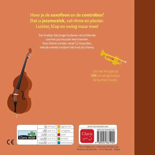 Een boekje dat jonge kinderen verschillende soorten jazzmuziek leert kennen. Voor kleine oortjes vanaf 12 maanden, met de wereld rondom het kind als thema.