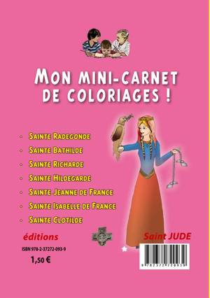 Une collection à petit prix pour occuper les enfants avec de beaux coloriages tout en découvrant les grands saints qui ont jalonnés l'Histoire de France. Mini-coloriage : Ste Radegonde, ste Bathilde, ste Richarde, ste Hildegarde de Vintzgau, ste Jeanne de France, bhse Isabelle de France, ste Ide de Boulogne