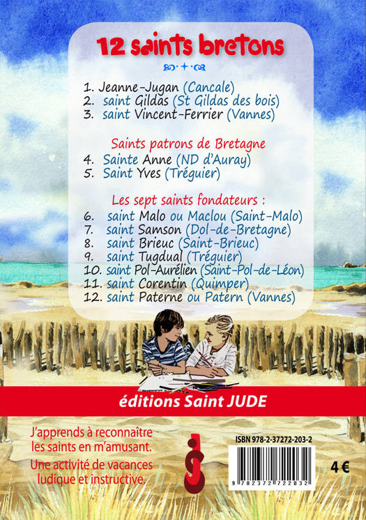 Cet album invite à découvrir et à colorier douze saints de Bretagne, de sainte Jeanne-Jugan, créatrice des Petites soeurs des pauvres à Cancale, à saint Paterne, évêque de Vannes, en passant par saint Samson, fondateur de l'abbaye de Dol.