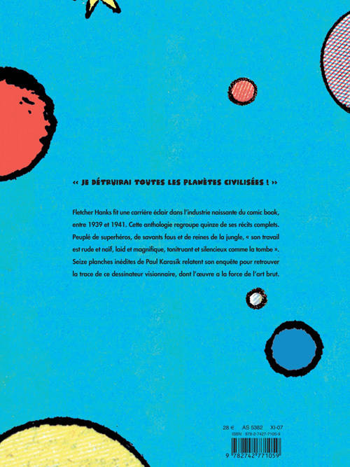 Cette anthologie regroupe quinze de ses récits complets. Peuplé de superhéros, de savants fous et de reines de la jungle, " son travail est rude et naïf, laid et magnifique, tonitruant et silencieux comme la tombe ". Seize planches inédites de Paul Karasik relatent son enquête pour retrouver la trace de ce dessinateur visionnaire, dont l'oeuvre a la force de l'art brut.
