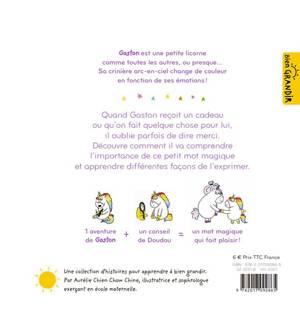 Quand il veut et obtient quelque chose ou qu’on lui rend service, Gaston oublie parfois qu’il existe un mot magique… Merci ! Comme Gaston, découvre l’importance de ce mot et tout ce qu’il apporte de positif dans ta vie et dans celle des autres !