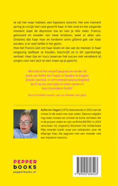 Je gaat toch geen gekke dingen doen?! gaat over Francis, een vrouw en moeder met een bipolaire stoornis. Elke keer als ze denkt dat haar leven lekker loopt, kan haar hele bestaan toch ineens weer flink ontsporen. Ze raakt dan of in een zware depressie waardoor ze de hele dag horizontaal ligt, of ze springt met rozegeverfd haar door het leven en dan is niets te gek. Het lijkt er wel eens op dat een bipolaire stoornis besmettelijk is, want haar man en kinderen worden soms gillend gek van haar. Toch is er veel liefde in het gezin. Maar overleeft haar huwelijk elke zware depressie, bizarre verliefdheid en heftige medicijnvergiftiging waardoor Francis bijna het loodje legt? Wat doet zij om haar leven en dat van de mensen in haar omgeving leefbaar te houden? Ze beschrijft in Je gaat toch geen gekke dingen doen?! tips en trucs waarvan het succes niet verzekerd is, maar die wel voor een lach en een traan op het gezicht van de lezer zorgen.