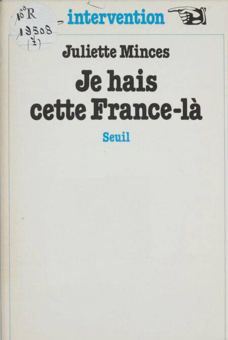La France de la lâcheté. La France des veaux. La France de ceux qui ne veulent pas savoir. Cette France-là, Juliette Minces la hait. La France de Vichy qui emprisonne ses juifs au camp de Gurs (Pyrénées-Orientales). Cette France-là est devenue, vingt ans après, celle qui fait la chasse aux Algériens dans les rues de Paris. Longtemps après, Juliette Minces se souvient. Sa haine n'a rien perdu de sa violence. Elle ne s'adresse pas à la France mais à ceux qui la défigurent. Ce livre brûlant est un cri à l'état pur.