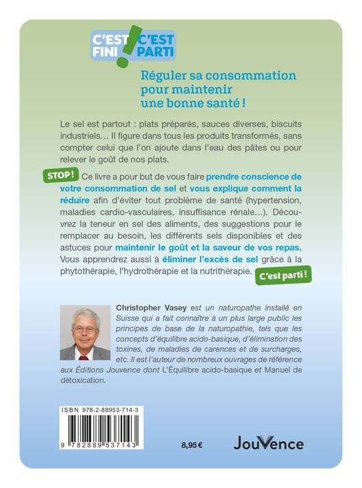 STOP ! Ce livre a pour but de vous faire prendre conscience de votre consommation de sel et vous explique comment la réduire afin d’éviter tout problème de santé (hypertension, maladies cardio-vasculaires, insuffisance rénale…). Découvrez la teneur en sel des aliments, des suggestions pour le remplacer au besoin, les différents sels disponibles et des astuces pour maintenir le goût et la saveur de vos repas. Vous apprendrez aussi à éliminer l’excès de sel grâce à la phytothérapie, l’hydrothérapie et la nutrithérapie. C'EST PARTI !