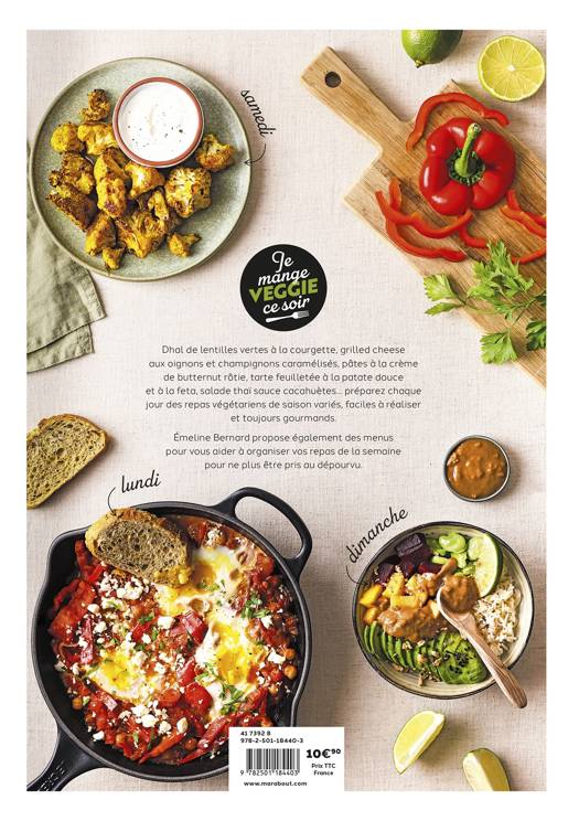 Dhal de lentilles vertes à la courgette, grilled cheese aux oignons et champignons caramélisés, pâtes à la crème de butternut rôtie, tarte feuilletée à la patate douce et à la feta, salade thaï sauce cacahuètes… préparez chaque jour des repas végétariens de saison variés, faciles à réaliser et toujours gourmands. Émeline Bernard propose également des menus pour vous aider à organiser vos repas de la semaine pour ne plus être pris au dépourvu.