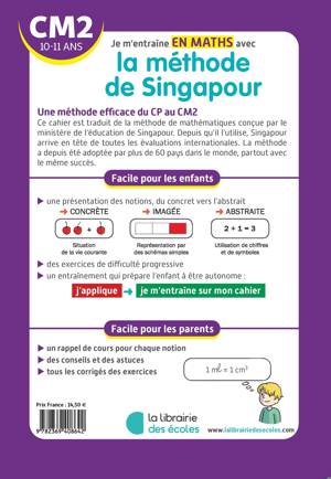 "Une méthode efficace du CP au CM2, grâce à la présentation des notions en allant du concret vers l'abstrait, à la progression des exercices, et à l'apprentissage de l'autonomie. Ce cahier propose 250 exercices et leur corrigé, un rappel de cours pour chaque notion et de précieux conseils et astuces."
