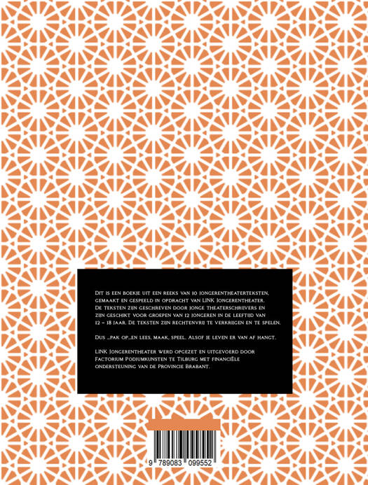 Dit is een boekje uit een reeks van 10 jongerentheaterteksten, gemaakt en gespeeld in opdracht van LINK Jongerentheater. De teksten zijn geschreven door jonge theaterschrijvers en zijn geschikt voor groepen van 12 jongeren in de leeftijd van 12 – 18 jaar. De teksten zijn rechtenvrij te verkrijgen en te spelen.