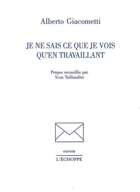 Ces propos de Giacometti, recueillis en 1952 par Yvon Taillandier, étaient restés inédits en français. Le sculpteur y évoque sa façon de travailler, ses oeuvres des années 30, la question du grand et du minuscule, du champ visuel...