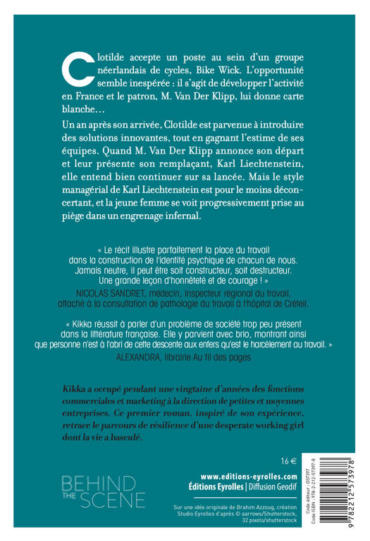 Clotilde est une battante qui trouve depuis qu'elle est jeune adulte de quoi nourrir son goût du défi dans l'entreprenariat. Devenue une épouse comblée et une mère de famille accomplie, Clotilde, en quête de plus de stabilité, accepte un poste de directrice du développement dans la filiale française d'un groupe néerlandais de cycles, Bike Wick. L'opportunité semble inespérée : l'entreprise affiche des valeurs humanistes en phase avec sa philosophie de vie et les valeurs chrétiennes que lui ont transmises ses parents, il s'agit de développer l'activité e-commerce avec la France, et le patron, M. Van Der Klipp, lui donne carte blanche... Un an après son arrivée, Clotilde est parvenue à développer le département du e-commerce grâce à des solutions innovantes, tout en gagnant l'estime de ses équipes. Quand M. Van Der Klipp annonce son départ et leur présente son remplaçant, Karl Liechtenstein, elle entend bien continuer sur sa lancée. Mais le style managérial de Karl Lichtenstein est pour le moins déconcertant, et la jeune femme est progressivement prise au piège d'un engrenage infernal. Armée de son enthousiasme et de son pragmatisme, Clotilde refuse de se laisser abattre ! Elle met tout en oeuvre pour donner satisfaction à son nouveau patron tout en préservant le département qu'elle a su construire, au risque d'y sacrifier bientôt sa santé physique et psychique.