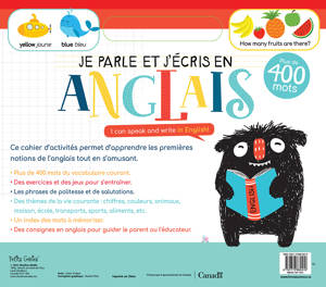 Ce cahier d'activités permet d'apprendre les premières notions de l'anglais tout en s'amusant. Plus de 400 mots du vocabulaire courant Des exercices et des jeux pour s'entraîner Les phrases de politesse et de salutations Des thèmes de la vie courante : chiffres, couleurs, animaux, maison, école, transports, sports, aliments, etc...