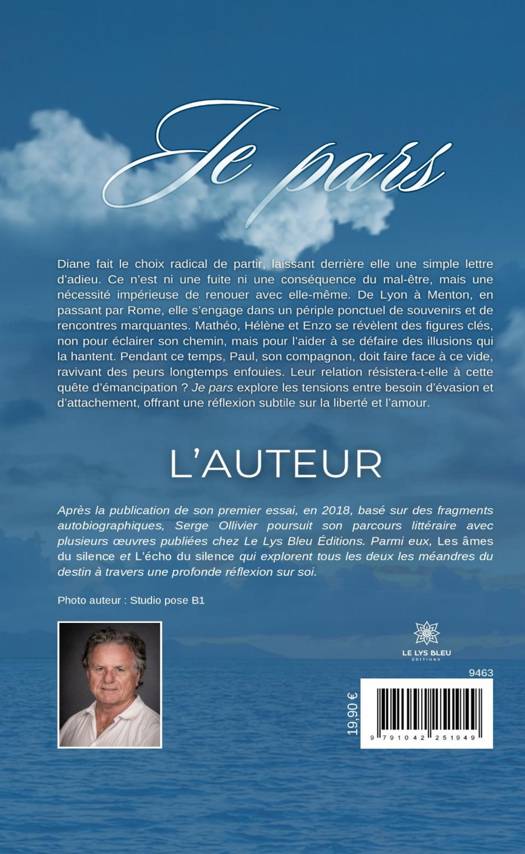 Diane fait le choix radical de partir, laissant derrière elle une simple lettre d'adieu. Ce n'est ni une fuite ni une conséquence du mal-être, mais une nécessité impérieuse de renouer avec elle-même. De Lyon à Menton, en passant par Rome, elle s'engage dans un périple ponctuel de souvenirs et de rencontres marquantes. Mathéo, Hélène et Enzo se révèlent des figures clés, non pour éclairer son chemin, mais pour l'aider à se défaire des illusions qui la hantent. Pendant ce temps, Paul, son compagnon, doit faire face à ce vide, ravivant des peurs longtemps enfouies. Leur relation résistera-t-elle à cette quête d'émancipation ? Je pars explore les tensions entre besoin d'évasion et d'attachement, offrant une réflexion subtile sur la liberté et l'amour.