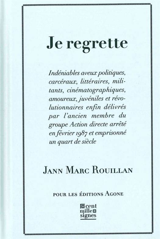 Série d’aveux indéniables et de souvenirs carcéraux, politiques, amoureux, militants, littéraires, cinématographiques, révolutionnaires et enfantins enfin délivrée avec une bonne foi irréprochable par cet ancien membre du groupe Action directe, qui joue avec ce que ses juges attendent de lui. Écrits au printemps 2010 (sur le modèle du_ Je me souviens _de Pérec), alors qu'il venait de passer à Marseille sa première année en semi-liberté depuis vingt ans, ce texte a été revu pour son édition.