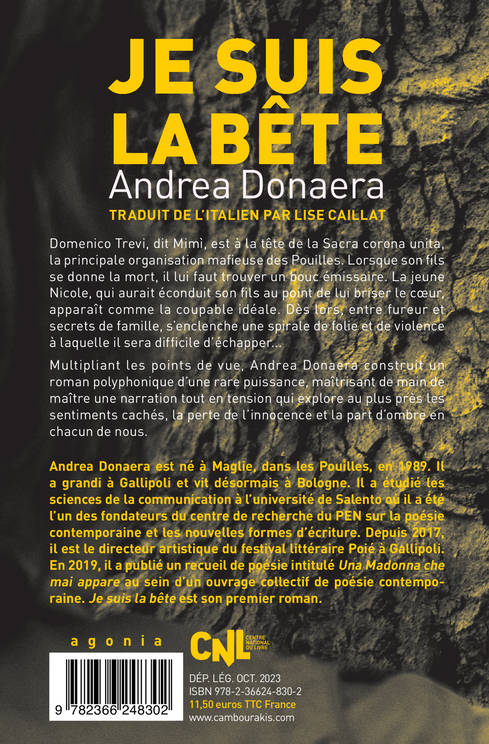 Domenico Trevi, dit Mimì, est à la tête de la Sacra corona unita, la principale organisation mafieuse des Pouilles. Lorsque son fils se donne la mort, il lui faut trouver un bouc émissaire. La jeune Nicole, qui aurait éconduit son fils au point de lui briser le coeur, apparaît comme la coupable idéale. Dès lors, entre fureur et secrets de famille, s'enclenche une spirale de folie et de violence à laquelle il sera difficile d'échapper... Multipliant les points de vue, Andrea Donaera construit un roman polyphonique d'une rare puissance, maîtrisant de main de maître une narration tout en tension qui explore au plus près les sentiments cachés, la perte de l'innocence et la part d'ombre en chacun de nous.