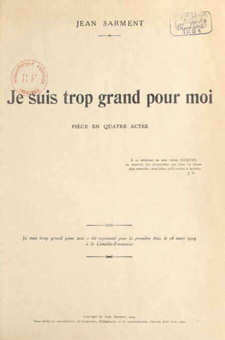 Pièce en quatre actes représentée, pour la première fois, le 26 mars 1924, à la Comédie française.