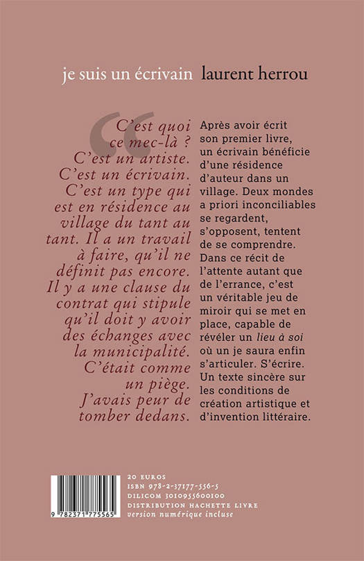 Après avoir écrit son premier livre, un écrivain bénéficie d'une résidence d'auteur dans un village. Deux mondes a priori inconciliables se regardent, s'opposent, tentent de se comprendre. Dans ce récit de l'attente autant que de l'errance, c'est un véritable jeu de miroir qui se met en place, capable de révéler un lieu à soi où un je saura enfin s'articuler. S'écrire. Un texte sincère sur les conditions de création artistique et d'invention littéraire.