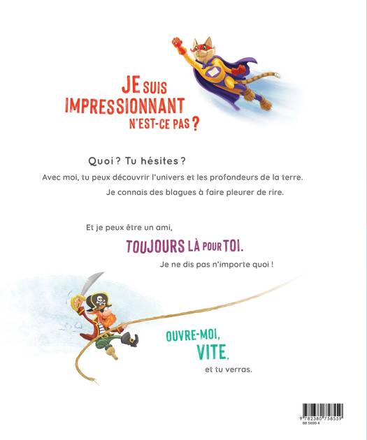 Les livres... quels objets intrigants, magiques, aux possibilités infinies ! Grâce à leurs mots et à leurs illustrations, les lecteurs peuvent voyager, rencontrer des personnages, trouver réconfort auprès d'un ami, rire aux éclats ou pleurer de bonheur. Le livre que vous tenez entre les mains sait à quel point il est extraordinaire, et il veut vous le prouver. Sur un ton humoristique et attachant, celui-ci vous démontrera le bonheur de le côtoyer, lui et ses compères, et les découvertes incroyables à faire en leur compagnie. Une délicieuse ode aux livres !
