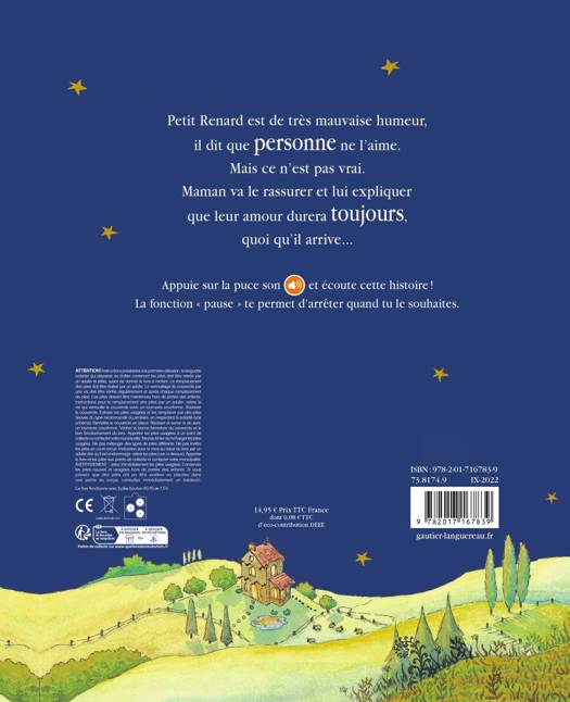 Petit Renard est de très mauvaise humeur. Il dit que personne ne l'aime. Mais ce n'est pas vrai. Maman va le rassurer et lui expliquer que leur amour durera toujours, quoi qu'il arrive...