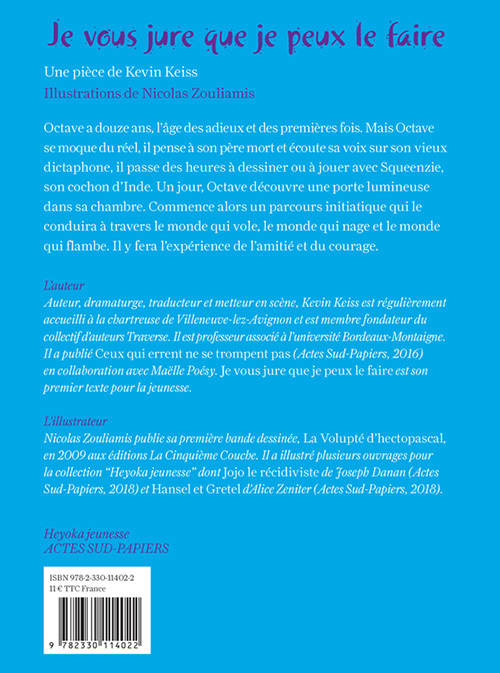 Octave a douze ans, l'âge des adieux et des premières fois. Mais Octave se moque du réel, il pense à son père mort et écoute sa voix sur son vieux dictaphone, il passe des heures à dessiner ou à jouer avec Squeenzie, son cochon d'inde. Un jour, Octave découvre une porte lumineuse dans sa chambre. Commence alors un parcours initiatique qui le conduira à travers le monde qui vole, le monde qui nage et le monde qui flambe. Il y fera l'expérience de l'amitié et du courage.