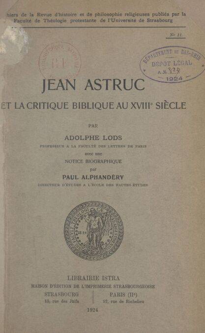 2. Jean Astruc et la critique biblique au XVIIIe siècle