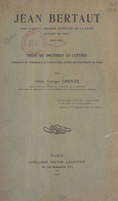Jean Bertaut, abbé d'Aunay, premier aumônier de la reine, évêque de Séez (1552-1611) E-BOOK