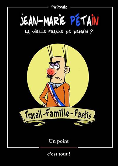 Jean-Marie Pétain ? C'est ce fameux pilier de bar que tout le monde à déjà croisé au moins une fois dans sa vie. Raciste, violent, phallocrate, homophobe et j'en passe, sa culture et son ouverture d'esprit sont tellement étroites qu'elles passeraient par le chas d'une aiguille à coudre. Vous l'aurez compris, vous allez aimer le destester.