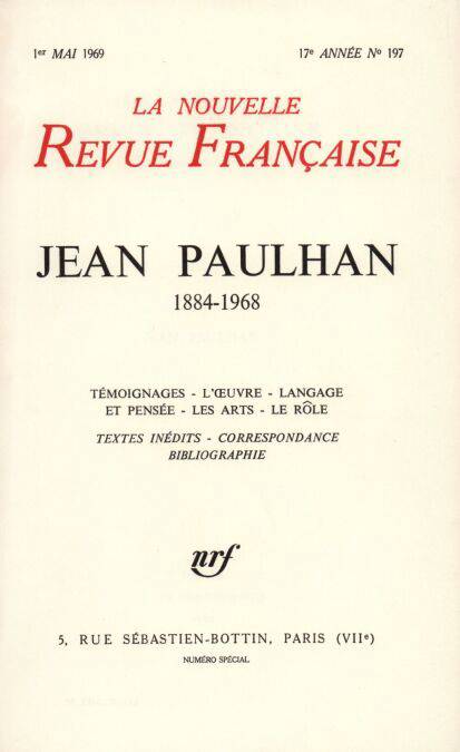 Le rôle : Étiemble, Paulhan épistolier Gaëtan Picon, D'une double entreprise Paule Thévenin, Le bouquet de violettes de Jean Paulhan Henry Amer, Jean Paulhan : un guide modeste Jacques Borel, Les clés de Jean Paulhan Alain Clerval, Un démocrate, Jean Paulhan